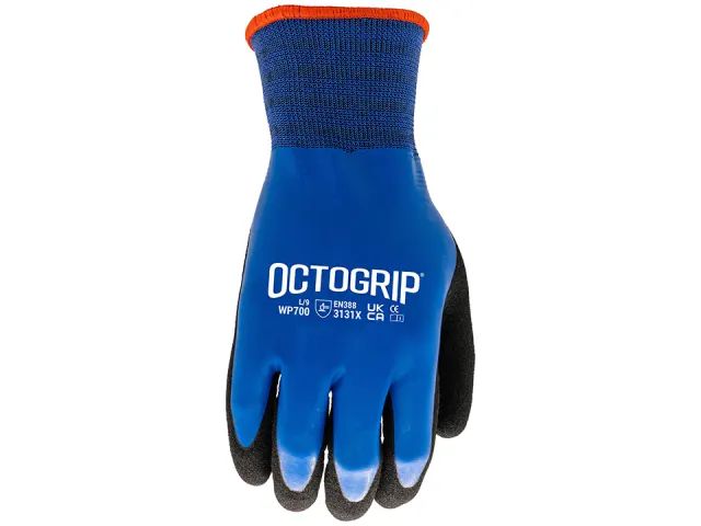 These waterproof working gloves have a 15 gauge polyester liner. They are lightweight and flexible. Featuring a double-dipped latex coating which is fully waterproof, keeping hands dry in wet environments.