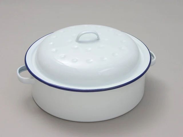 A traditional English design finishes this white enamel roaster beautifully. And this beauty will last as its stain and scratch resistant with a heavy gauge construction- allowing years of satisfied use. This product is 20cm in diameter and is perfect for casseroles and roasts as its completely oven safe.