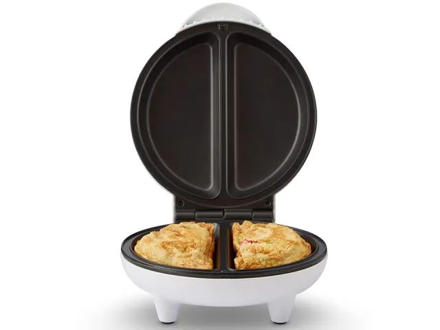 Create two delicious and perfectly shaped omelettes without the need for flipping half way through with the dual semi-circular design of the cooking plates.