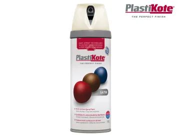 The PlastiKote Twist & Spray Premium Satin Paint gives an enhanced, consistent coverage. The easy spray technology provides added control to make spray painting easier, faster and cleaner. Each coat is ultra-smooth, providing flawless coverage that dries quickly to a tough, durable finish.